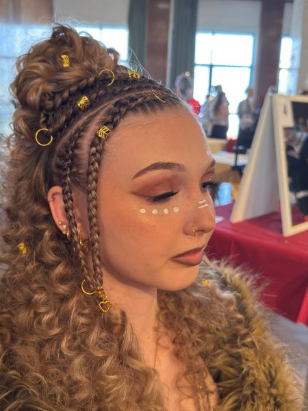 V dámské kategorii s živým modelem, nesoucí poetický název „Symfonie spletené krásy a kadeří“, zazářila Natálie Liďáková ze Střední školy gastronomie, oděvnictví a služeb Frýdek-Místek, která si odnesla zlaté umístění.